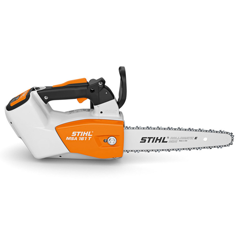 Stihl MSA 161 T – Motosega a batteria compatta e silenziosa, ideale per la cura degli alberi in aree sensibili al rumore. Dotata di catena 1/4" PM3 per tagli precisi e performanti, offre massima maneggevolezza e praticità grazie al dado antiperdita sul coperchio del rocchetto.